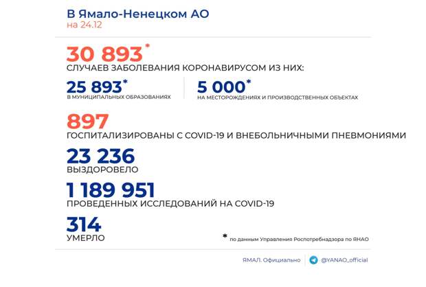 Согласно статистике, 24 человека заболели в Ноябрьске. В Муравленко коронавирусную инфекцию диагностировали у 6 пациентов. 22 - в Новом Уренгое. 11 - в Салехарде.